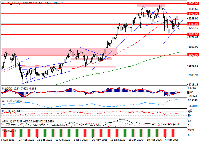 Pierwsze wymiany na rynku kasowym przekładają się na zwyżkę WIG20 o około 1 procent. W indeksie drożeje 17 spółek, z których na plan pierwszy wybija się zwyżka CD Projektu o około 8 procent. Rynek odpowiada na dane finansowe spółki, co pozwala grać obok nastrojów. Ważne dla indeksu spółki surowcowe dają mieszany obraz. KGHM drożeją o 1,6 procent, gdy PKN gra w rejonie równowagi zwyżką o 0,1 procent. Niemniej, liderem otwarcia pod względem obrotu jest CD Projekt, który zbiera 40 procent aktywności w WIG20. Technicznie patrząc powrót WIG20 w rejon 3300 pkt. potwierdza znany z poprzednich sesji sygnał, iż psychologiczny poziom stałe się punktem równoważenia sił podaży i popytu. Rejon 3300 pkt. jest też neutralny technicznie z punktu widzenia odległości od wsparć w rejonie 3200 pkt. Otoczenie wspiera popyt zwyżką DAX-a o 1,2 procent i powrotem niemieckiego Indeksu nad wsparcie w rejonie 23000 pkt.