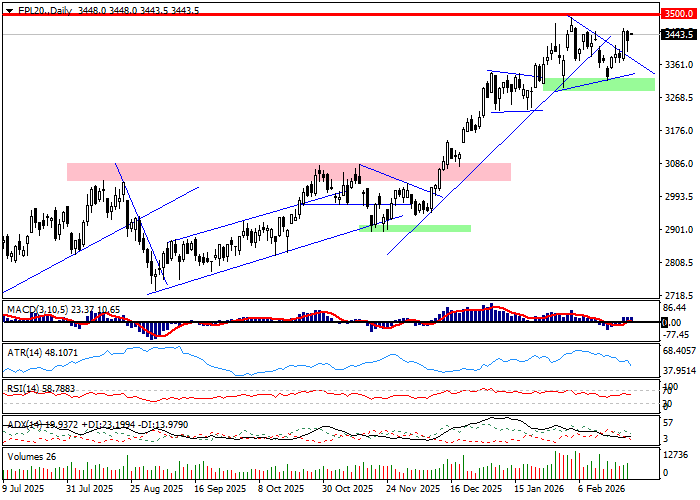 Kontrakty na indeksy europejskie pozycjonują się pod wzrostowe otwarcia. W otoczenie wpisuje się pochodna na WIG20, która zapowiada zwyżkę indeksu bazowego o około 0,4 procent. Z perspektywy technicznej ruch w rejon 3445 pkt. potwierdza ostatni sukces byków w postaci wybicia z konsolidacji górą, ale przed bykami stale stoi zdanie pokonania strefy oporów w rejonie 3470-3490 pkt. umacnianej psychologiczną barierą 3500 pkt.