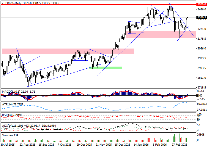 Kontrakty na indeksy europejskie wskazują, iż bliskie otoczenie GPW zacznie sesje zwyżkami. Gracze na rynku pochodnej na WIG20 pozycjonują się pod analogiczny ruch indeksu bazowego i w pierwszych wymianach lokują FW20 w rejonie 3382 pkt., co przekłada się na zwyżkę o 0,6 procent. Z perspektywy technicznej otwarcie luką wzmacnia wczorajszy sukces byków związany z przełamaniem marcowej fali spadkowej, ale do powrotu w rejon 3500 pkt. jest ciągle daleko. Położenie techniczne pozwala też czekać na kolejny ruch rynku kasowego.