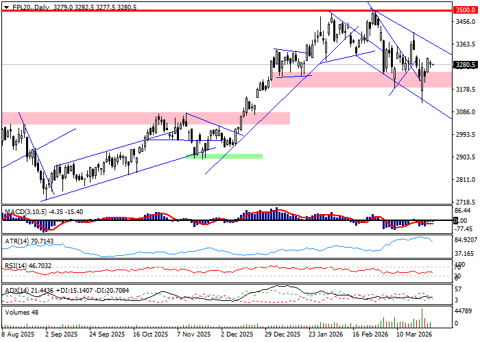 Kontrakty na indeksy europejskie sygnalizują, iż bliskie otoczenie GPW zacznie sesje skromnymi zwyżkami najważniejszych indeksów. Niestety, na rynku surowcowym można obserwować wzrost cen ropy, co w obecnym układzie sił oznacza, iż otwarcia i pierwsze wymiany na rynkach akcji mogą być gorsze od oczekiwań. Gracze na rynku pochodnej na WIG20 wybierają scenariusz neutralny i w pierwszych wymianach lokują FW20 w rejonie 3280 pkt., co przekłada się na przesunięcie o -0,2 procent. Technicznie patrząc otwarcie przedłuża wczorajszą konsolidację i pozwala oczekiwać spokojnego otwarcia na rynku kasowym.