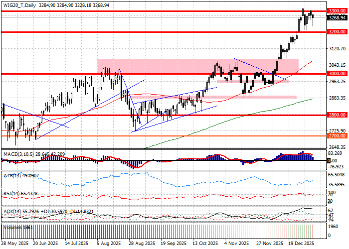 Notowania środowe na Giełdzie Papierów Wartościowych w Warszawie skończyły się skromnymi spadkami najważniejszych indeksów. WIG20 oddał 0,37 procent, gdy indeks szerokiego rynku WIG spadł o 0,39 procent. Obrót w koszyku 20 największych spółek zbliżył się do 2,39 miliarda złotych, gdy na całym rynku sięgnął 2,75 miliarda złotych. Relatywnie duża aktywność rynku została zbudowana na obrocie akcjami spółek Dino Polska, KGHM, Pekao, Orlen i PKO BP, na które przypadła przeszło połowa wartości wymiany na całym rynku i przeszło 60 procent w WIG20. W gronie blue chipów pozytywnie wyróżniły się spółki Budimex, CCC i KGHM, które zyskały – odpowiednio – 4,02 procent, 3,76 procent oraz 2,33 procent. Po przeciwnej stronie zagrały spółki Allegro i Dino Polska, które straciły – odpowiednio – 3,28 procent i 4,93 procent. Ważne dla rynku spółki bankowe sumaryczne zagrały w obozie podażowym. W WIG20 przeceniły się akcje wszystkich spółek sektora, gdy indeks WIG-Banki stracił więcej od rynku i spadł o 0,94 procent zbierając blisko 670 milionów złotych obrotu. Wielkość obrotu i handel daleki od czytelnego kierunku wskazują, iż rynek pozostaje spolaryzowany, co owocuje śródsesyjną zmiennością i dużymi wymianami na ważnych walorach, ale nie sumuje się w przesunięcie WIG20 poza granice konsolidacji granej między strefą oporów w rejonie 3312-3300 pkt. i strefą wsparcia w rejonie 3216-3200 pkt. W istocie, z perspektywy technicznej sesję można uznać za rozdanie zagrane w konsolidacji, która zdominowała kilka ostatnich dni. Układ wymusza zawieszenie ocen lokalnej kondycji rynku i jednocześnie pozwala czekać na kolejne impulsy, które przełożą się na policzenie się stron rynku na granicach konsolidacji. Wskaźnikowo większe szanse należy dawać stronie podażowej, gdyż rynek jawi się jako wykupiony, ale płaska na dziś konsolidacja sprzyja też chłodzeniu oscylatorów bez poważniejszych strat technicznych.