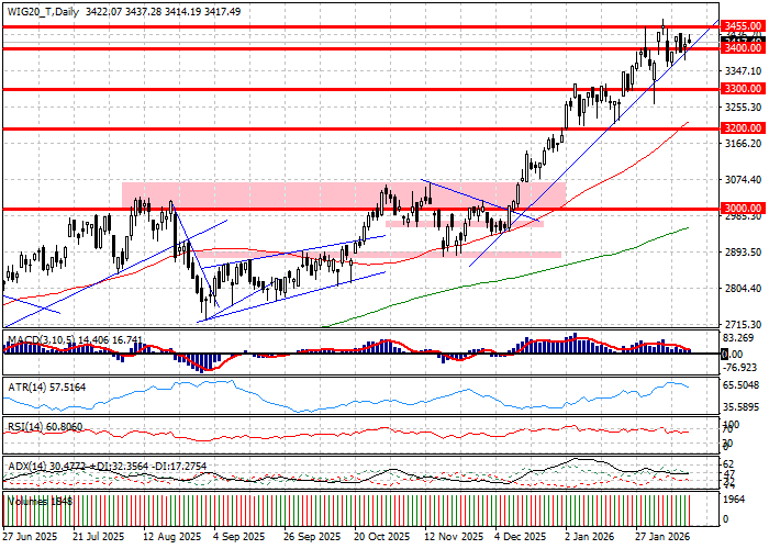 Notowania czwartkowe na Giełdzie Papierów Wartościowych w Warszawie skończyły się skromnymi zmianami najważniejszych indeksów. WIG20 wzrósł o 0,14 procent przy obrocie przekraczającym 1,43 miliarda złotych, gdy indeks szerokiego rynku WIG właściwie nie zmienił swojego położenia przy obrocie zbliżonym do 1,73 miliarda złotych. Zmienność była adekwatna do dynamiki wymian. W istocie, WIG20 spędził sesję oscylując na wąskiej półce. Do odnotowania jest fakt, iż spółka KGHM – która była ostatnio najmocniej granym walorem na rynku – ustąpiła dziś pierwszego miejsca spółce PKO BP, co sygnalizuje, iż emocje na akcjach miedziowej spółki nieco przygasły. Stabilizująco na rynek działał rynek walutowy, na którym dolar szukał wyciszenia po wczorajszym wzroście. W podażowym obozie grał rynek surowcowy, na którym metale szukały przeceny razem z ropą. Trudno dla rynku prezentowały się również giełdy bazowe. Niemiecki DAX szukał mocnej zwyżki, gdy Wall Street zdawała się konsolidować, ale w końcówce sesji warszawskiej również z tych kierunków popłynęły impulsy spadkowe. Z perspektywy technicznej WIG20 ma za sobą kolejny dzień w konsolidacji, który naprawdę koresponduje z analogicznym zachowaniem niemieckiego DAX-a i amerykańskiego S&P500 zawieszonych pod szczytami hossy i w rejonach psychologicznych barier – odpowiednio – 25000 pkt. i 7000 pkt. Odpowiedzią GPW na konsolidację DAX-a i S&P500 jest zawieszenie WIG20 w rejonie 3400 pkt. i pod szczytem hossy wyrysowanym w okolicy 3500 pkt. W takim układzie można stale zakładać, iż szeroko rozumiane rynki bazowe - od akcji przez surowce po waluty – przesądzą o bliskiej przyszłości GPW i podyktują indeksowi WIG20 kierunek wybicia z konsolidacji granej pomiędzy szczytem hossy wyrysowanym w rejonie 3475 pkt. i pierwszymi wsparciami zalegającym w rejonie 3350 pkt.