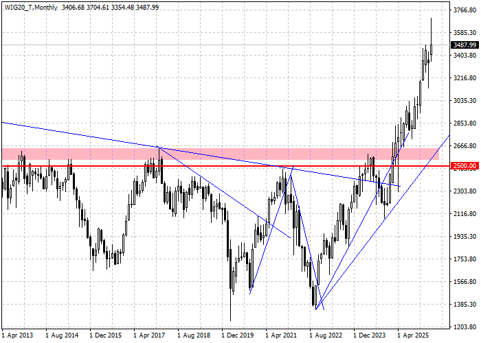 Finałowa sesja kwietnia na rynku warszawskim skończyła się spadkami najważniejszych indeksów. WIG20 oddał 0,45 procent przy obrocie zbliżonym do 2,6 miliarda złotych, gdy indeks szerokiego rynku WIG stracił 0,41 procent z licznikiem obrotu pokazującym 3,03 miliarda złotych. W kontekście zakończenia miesiąca i ostatniej sesji kwietnia warto odnotować, iż przeszło 1,1 miliarda złotych obrotu w WIG20 przypadło na końcowy fixing, więc znacząca część aktywności rynku była elementem porządkowania portfeli przez inwestorów instytucjonalnych. W trakcie sesji, przeciwko bykom grała awersja do ryzyka, którą kształtowały wczorajsze zwyżki cen ropy i prowojenne pomruki prezydenta Donalda Trumpa grożącego Iranowi powrotem do aktywnej fazy konfliktu na Bliskim Wschodzie. Niezależnie, spadek WIG20 przełożył się na pogłębienie odejścia indeksu od szczytu hossy wyrysowanego w rejonie 3704,61 pkt. do 6,44 procent licząc do sesyjnego dołka zagranego w rejonie 3466,20 pkt. i – co znacznie ważniejsze – zaowocował zamknięciem rozdania poniżej psychologicznej bariery 3500 pkt. Technicznie patrząc podaży udało się przełamać wsparcie, które popyt skutecznie bronił na sesjach wtorkowej oraz środowej, co sygnalizowało próby zakończenia aktualnej korekty. Przebicie 3500 pkt. oznacza, iż indeks otworzył sobie drogę w rejon 3400 pkt., a patrząc na wykres tygodniowy indeksu nie można wykluczyć nawet zejścia w rejon 3300 pkt. Nie ma też wątpliwości, iż rynek wejdzie w kolejny miesiąc w układzie korekcyjnym mimo tego, iż kwiecień skończył się zwyżką WIG20 o 4,41 procent. Pozytywem, jak i negatywem w tym układzie sił staje się fakt, iż przecena w drugiej połowie miesiąca została zagrana przynajmniej w części w korelacji z otoczeniem, więc właśnie zachowanie giełd bazowych powinno być elementem, który przesądzi o kondycji WIG20 w maju, miesiącu uznawanym za okres pozycjonowania się inwestorów na rynkach akcji pod słabszą część roku.