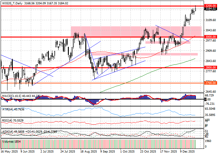 Finałowa sesja roku na Giełdzie Papierów Wartościowych w Warszawie skończyła się zwyżkami najważniejszych indeksów. WIG20 wzrósł o 0,60 procent przy obrocie przekraczającym 1,13 miliarda złotych, gdy indeks szerokiego rynku WIG zyskał 0,55 procent przy obrocie 1,47 miliarda złotych. Z perspektywy końca sesji widać, iż rozdanie zaczęło się od dynamicznego ataku popytu, który szukał swojej szansy wspierany odbiciem na rynku metali, co wprost pomagało ważnej dla indeksów spółce KGHM. W istocie, finalnie akcje KGHM okazały się najmocniej granym walorem na rynku i z 206 milionami złotych zebrały niewiele mniej niż 20 procent obrotu w WIG20. Spółka była też najsilniejszą w koszyku blue chipów i zyskała 2,82 procent wprost przenosząc zwyżkę cen miedzi o 2,83 procent. Wynik dnia zapewne byłby lepszy, gdy poranny atak popytu, który wyniósł WIG20 nad psychologiczną barierę 3200 pkt. i ustalił nowy rekord hossy na 3204 pkt., nie został zagrany na płytkim rynku. W konsekwencji, wykreślenie nowego rekordu hossy przy zamknięciu dnia na poziomie 3184 pkt. wzmocniło psychologiczną barierę 3200 pkt. i ustaliło nowy opór techniczny. W efekcie, flirt z 3200 pkt. przenosi się na pierwsze sesje stycznia 2026 roku, które będą grane w trudnym dla byków kontekście w postaci największej, rocznej zwyżki WIG20 w XXI wieku, gdyż indeks skończył 2025 rok wzrostem o przeszło 45 procent. W przeszłości wzrost WIG20 o więcej niż 40 procent pojawił się w 1999 roku i w kolejnym roku zwyżka indeksu wyniosła ledwie 1,5 procent. Kolejne lata były okresem spadków dyktowanych przez pęknięcie bańki internetowej. Dziś jednak inwestorzy mogą cieszyć się doskonałym zakończeniem roku w wykonaniu WIG20, jakiego nie doświadczyli od 25 lat i świętować zameldowanie się indeksu WIG na poziomie najwyższym w historii przy równie imponującej zwyżce w skali roku o 47 procent.