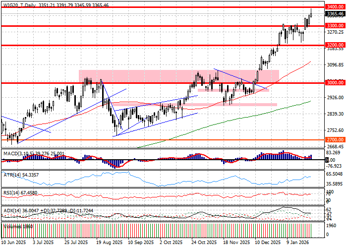 Notowania wtorkowe na rynku warszawskim skończyły się zwyżkami najważniejszych indeksów. WIG20 wzrósł o 0,28 procent przy obrocie zbliżonym do 2,43 miliarda złotych obrotu, gdy indeks szerokiego rynku WIG zyskał 0,45 procent zbierając przeszło 2,81 miliarda złotych. Zmiany indeksów nie oddają jednak pełnej rozpiętości sesji, która w skrajnym punkcie ulokowała WIG20 na nowym rekordzie hossy w rejonie 3392 pkt., gdy indeks WIG pierwszy raz w historii znalazł się nad psychologiczną barierą 125000 pkt. Ważną częścią rozdania była znana z poprzednich sesji wrażliwość rynku na kondycję złotego i postawę metali. W istocie, KGHM odpowiedziała spadkiem o 6,69 procent na przecenę srebra o 6,1 procent. Przeciwwagą dla przeceny KGHM zagranej przy 679 milionach złotych obrotu okazało się umocnienie złotego do dolara o przeszło 1 procent. Efektem był wzrost ceny warszawskich spółek bankowych, których indeks WIG-Banki zyskał 2,38 procent zbierając 739 milionów złotych obrotu. Z perspektywy technicznej sesję należy uznać za realizację potencjału ruchu zbudowanego wybiciem się WIG20 z konsolidacji w strefie 3300-3200 pkt. Indeksowi brakło dziś do poziomu 3400 pkt. niewiele więcej niż 0,2 procent. Układ świecowy wskazuje, iż psychologiczna bariera zadziałała jako element wyzwalający realizację zysków, ale też trudno mówić o zaskoczeniu, gdy indeks szybuje na poziomach ostatni raz oglądanych w 2008 roku. W sumie, liczenie podaży z popytem w rejonie 3400 pkt. było oczekiwane, gdyż rynek wykazywał wrażliwość na równe poziomy, które pełnią rolę oporów technicznych. Szukając ryzyk dla kontynuacji zwyżki warto spoglądać na rynek walutowy oraz w stronę rynku metali, który – jak pokazuje dzisiejsza reakcja KGHM – może być jedną ze zmiennych uruchamiających korektę w Warszawie.