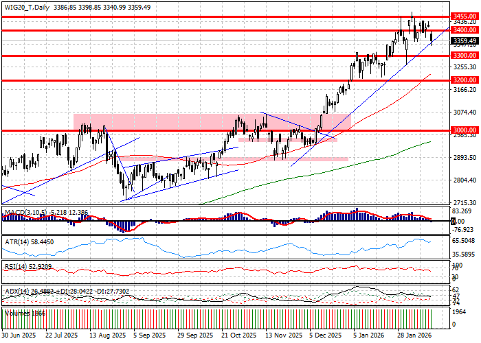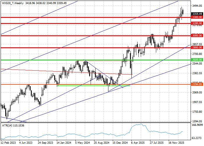 Finałowa sesja tygodnia na rynku warszawskim skończyła się mocnymi spadkami najważniejszych indeksów. WIG20 stracił 1,70 procent przy obrocie przekraczającym 2,05 miliarda złotych, gdy indeks szerokiego rynki WIG oddał 1,55 procent przy 2,54 miliarda złotych obrotu. W pierwszej fazie sesji przeciwko bykom grała przecena akcji KGHM, które finalnie oddały 1,55 procent. W drugiej fazie sesji na plan pierwszy wybiła się słabość spółek bankowych i WIG-Banki oddał 3,31 procent zbierając 743 miliony złotych obrotu. W istocie, oddech rynku był jednoznacznie negatywny i w WIG20 przeceniło 15 spółek przy 4 rosnących i 1 bez zmiany ceny. W tym kontekście do odnotowania jest mocna zwyżka Dino o 3,54 procent oraz wzrost Pepco o 1,51 procent. Na szerokim rynku spadki zanotowało 58 procent spółek przy ledwie 28 procent drożejących i 14 procent bez zmiany ceny. Z perspektywy końca sesji widać, iż bykom nie pomagała relacja złotego z dolarem, a finalnie rynek nie potrafił posilić się odbiciem na rynku metali po niższym od oczekiwań odczycie inflacji CPI w USA, który przełożył się wzrost wycen prawdopodobieństwa trzech obniżek ceny kredytu przez Fed do końca 2026 roku. Technicznie patrząc WIG20 zdołał utrzymać się w konsolidacji między szczytem hossy wyrysowanym w rejonie 3475 pkt. i wsparciami w rejonie 3350 pkt., ale też zanotował pierwszy tygodniowy spadek po serii dziewięciu tygodni wzrostów. Ostatni element ostrzega przed korektą, która może wymusić na popycie odsunięcie się do kolejnej strefy wsparcia w rejonie 3300-3265 pkt. Stale warto jednak zakładać, iż kolejny ruch rynku zostanie podyktowany przez otoczenie, które kończy tydzień w układach sprzyjających korektom. Inaczej mówiąc, szacując ryzyko pogłębienia spadków WIG20 w zakończonym właśnie tygodniu nie należy tracić z pola uwagi zachowania giełd bazowych, rynku surowcowego oraz relacji złotego z dolarem.