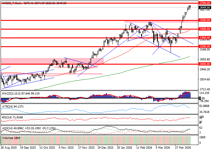 Sesja czwartkowa na Giełdzie Papierów Wartościowych w Warszawie skończyła się spadkami najważniejszych indeksów. WIG20 stracił 0,45 procent przy obrocie zbliżonym do 2,14 miliarda złotych, gdy indeks szerokiego rynku WIG oddał 0,48 procent z licznikiem obrotu pokazującym niemal 2,63 miliarda złotych. Aktywność rynku była skupiona na kilku spółkach, z których Allegro, KGHM, Orlen, PKO i Żabka ugrały po przeszło 200 milionów złotych. Co ważne, z wymienionych wyżej walorów tylko PKN zdołał ugrać skromną zwyżkę o 0,02 procent, gdy reszta liderów aktywności straciła na wartości. Generalnie oddech rynku był negatywny i w WIG20 przeceniło się 14 spółek przy 6 drożejących, gdy na całym rynku spadła cena 49 procent walorów przy 38 procent rosnących i 13 procent bez zmiany ceny. Do odnotowania jest fakt, iż GPW szukała dziś przeceny w generalnie wzrostowym kontekście, który od poranka zachęcał popyt do aktywności. Wczorajsze rekordy na Wall Street w wykonaniu indeksów S&P500 i Nasdaqa Composite owocowały zwyżkami w Europie, które finalnie nieco zbladły, ale GPW już od poranka jawiła się jako słabsza od otoczenia, co samo w sobie staje się sygnałem, iż lokalne zmienne zaczynają grać w obozie podażowym. Zachowanie rynku jawi się jako zrozumiałe, gdy uwzględni się fakt, iż wykreślony dziś rekord hossy w perspektywie intraday wypadł kilkanaście procent procent wyżej od dołka marcowej wyprzedaży. Skala zwyżki, szybkość podejścia i uwzględnienie w cenach prawdopodobnie wszystkich pozytywnych scenariuszy na Bliskim Wschodzie zachęcają do realizacji zysków i zwyczajnie grożą korektą. Z perspektywy technicznej, w czwartek pojawił się kolejny sygnał, iż w rejonie 3700 pkt. bykom zaczyna brakować argumentów na wykupionym rynku, ale też stale więcej jest ostrzeżenia przed korektą niż samej korekty, gdyż finalne położenie WIG20 było tylko 0,67 procent niższe od wyznaczonego dziś nowego rekordu hossy.
