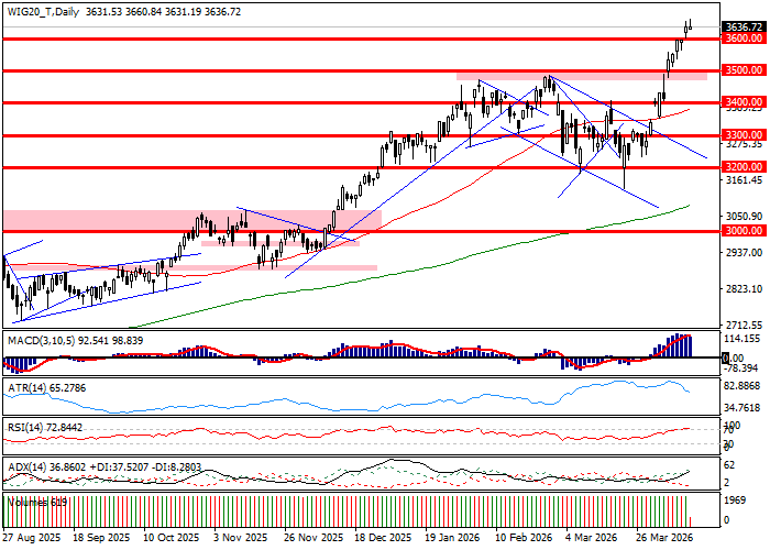 Końcówka przedpołudniowej fazy sesji przynosi powrót WIG20 w rejon porannego minimum. Indeks spada też poniżej poziomu z wczorajszego zamknięcia. Efektem technicznym kontry podaży – zbudowanej na impulsach z otoczenia – jest kreślenie świecy bez korpusu z górnym cieniem, co wpisuje się w wspomniane wcześniej ostrzeżenia o wykupieniu rynku i ryzyko realizacji zysków. Jak zawsze, jedna świeczka nie zmienia trendu, ale układ na wykresie zaczyna kontrować optymizm rynku.