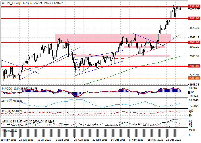 WIG20 kończy pierwszą godzinę sesji podejściem w rejon 3290 pkt. Zwyżka indeksu sięga 0,6 procent, na co największy wpływ ma odreagowanie na akcjach Dino, które rośną o 1,8 procent i banków, których indeks zyskuje 1,1 procent. W przeciwnym obozie gra KGHM, która przecenia się o 1,8 procent razem z rynkiem miedzi. Technicznie patrząc zwyżka wynosi indeks WIG20 w pobliże strefy oporów w rejonie 3312-3300 pkt., ale na chwilę obecną stale wszystko odbywa się w granicach konsolidacji między oporami w rejonie 3312-3300 pkt. i strefą wsparcia w rejonie 3216-3200 pkt. Otoczenie zachowuje się poprawnie dla popytu. DAX próbuje wygasić wczorajszy impuls korekcyjny, gdy futures na S&P500 szukają zwyżki i odbicia po wczorajszym spadku rynku kasowego.