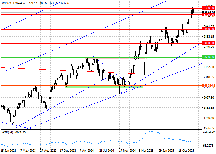 Środkowa faza sesji lokuje WIG20 w rejonie 3240 pkt. Indeks powiększył poranny spadek do przeszło 1,2 procent niesiony na południe słabą postawą spółki Dino spadającej o 5,9 procent. Słabiej od rynku grają też spółki bankowe i WIG-Banki oddaje 1,7 procent. Po przeciwnej stronie gra Budimex zwyżką o 4,2 procent, ale spółka ma za mały udział w indeksie, by być przeciwwagą dla ciężkich walorów w koszyku blue chipów. Technicznie patrząc można mówić o powrocie do środka konsolidacji ograniczanej poziomami 3300 pkt. i 3200 pkt. Półmetek sesji środowej jest też półmetkiem tygodnia, co zachęca do spojrzenia na wykres WIG20 w tej perspektywie czasowej. Układ pozwala odnotować kreślenie czarnego korpusu, który uzupełnia się ze świecą poprzedniego tygodnia sygnalizującą nie tylko równowagę na rynku, ale też niepewność graczy, co do dalszego scenariusza. W takim ujęciu pierwsza połowa tygodnia zaczyna przechylać przewagę na stronę podaży.