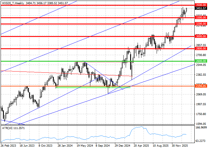 Środkowa faza sesji lokuje WIG20 na poziomach kosmetycznie różnych od otwarcia i zakończenia pierwszej godziny rozdania. Brak nowych treści na wykresie dziennym i zbliżający się półmetek tygodnia pozwalają spojrzeć na rynek w szerszej perspektywie czasowej. To, co na wykresie dziennym wygląda na wybicie z konsolidacji i atak na szczyt hossy, w perspektywie tygodniowej pozostaje częścią konsolidacji granej pod szczytem hossy i psychologiczną barierą 3500 pkt. Warto jednak odnotować, iż w połowie tygodnia zwyżka WIG20 przekracza 2 procent, co dowiezione do piątkowego zamknięcia przełożyłyby się na najlepszy tydzień indeksu od pierwszego tygodnia stycznia.