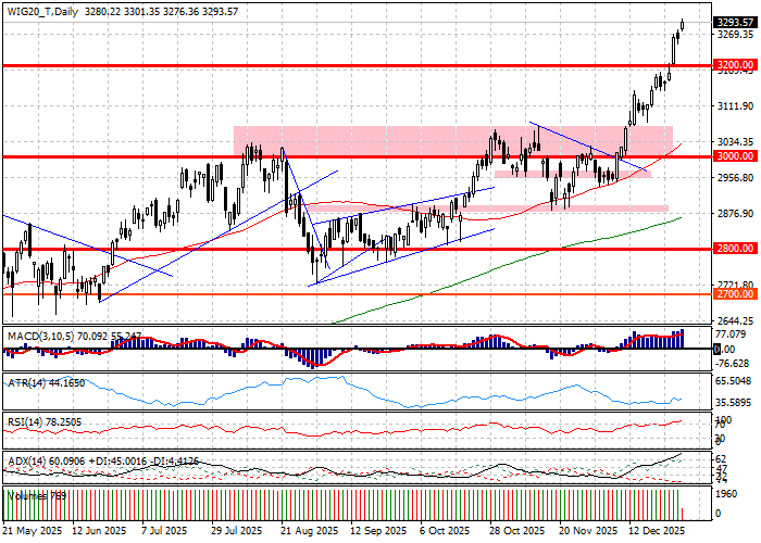 Środkowa faza sesji lokuje WIG20 w rejonie 3295 pkt. Indeks pozostaje zatem w konsolidacji po porannym teście psychologicznej bariery 3000 pkt. Aktywność pozostaje wysoka. Licznik obrotu w WIG20 pokazuje przeszło 1 miliarda złotych. Sesja zapowiada się zatem jako przynajmniej równie dynamiczna, jak poniedziałkowa, która skończyła się dla WIG20 obrotem zbliżonym do 2 miliardów. Na chwilę obecną przewagę trzeba przypisać stronie popytowej, gdyż indeks rośnie o 1,1 procent.