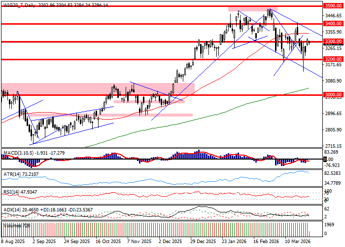 Środkowa faza sesji nie przynosi nowych treści. Rynek tylko wzmocnił akcenty, które były widoczne w pierwszej fazie rozdania. Spółka LPP powiększyła zwyżkę od 7,2 procent, gdy KGHM powiększyła spadek do 4,4 procent. Na dwie spółki stale przypada blisko połowa aktywności rynku w WIG20, gdy indeks oddaje obserwowane o poranku 0,5 procent. Otoczenie cały czas wywiera presję podażową spadkami indeksów i wzrostem cen ropy. Technicznie patrząc WIG20 stabilizuje się w rejonie 3300 pkt.