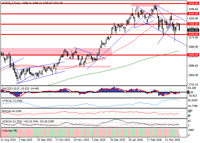 Środkowa faza sesji lokuje WIG20 na dziennych minimach. Indeks traci 2 procent niesiony na południe spadkiem Dino o 17 procent i przeceną 18 spółek przy ledwie dwóch notujących tylko kosmetyczne zwyżki. Presją z otoczenia jest jeszcze mocniejsza. Kontrakty na ropę przesunęły się z widełek 2-3 procent w widełki 3,50-4,00 procent. Odpowiedzią rynków bazowych jest pogłębienie spadków. DAX traci 1,6 procent, gdy futures na S&P500 0,8 procent. Całość sumuje się we czytelny risk off, który wzmacnia jeszcze umocnienie dolara i związane z tym osłabienie złotego.