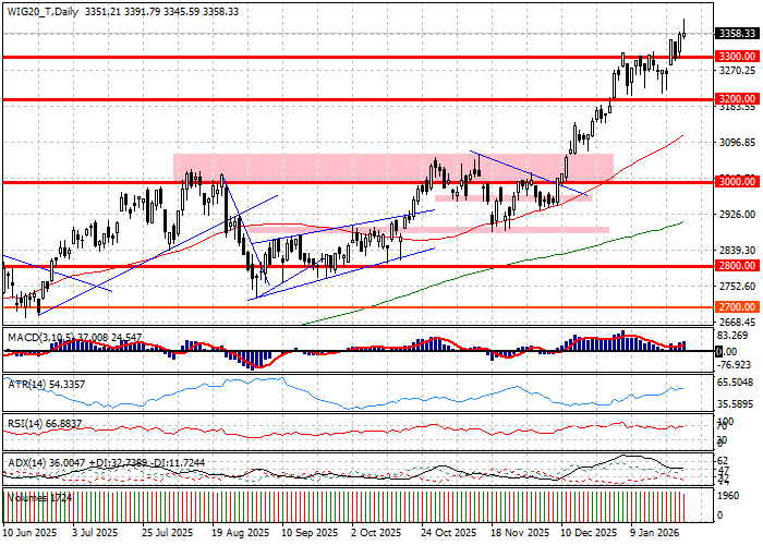 Pierwsza godzina sesji na Wall Street sygnalizuje, iż rynki amerykańskie szukają zwyżek. S&P500 rośnie o 0,3 procent, gdy Nasdaq Composite zyskuje 0,70 procent. Spadek DJIA o 0,9 procent jest zbudowany na tąpnięciu spółki UnitedHealth Group, która traci 19 procent i sama zabiera niemal 0,7 procent indeksowi DJIA. GPW posiliła się atmosferą w otoczeniu, ale znaczący wpływ na rynek warszawski stale ma umocnienie złotego, który zyskuje do dolara 0,9 procent, gdy dolar osłabia się do euro o 0,7 procent. W efekcie WIG20 może kończyć sesję grając o zamknięcie na nowym rekordzie hossy, gdy w perspektywie intra nowy rekord został ustalony na 3392 pkt. Ostatni element oznacza, iż indeks dotarł w pobliże 3400 pkt., więc okazywana wcześniej wrażliwość rynku na równe poziomy musi owocować próbą kontry podaży i jakąś formą realizacji zysków. Mówiąc o rekordach trzeba odnotować dzisiejsze pierwsze w historii wyjście WIG nad 125000 pkt. Na chwilę obecną bykom nie udaje się jednak utrzymać indeksu szerokiego rynku nad psychologiczną barierą. Jutro warto liczyć się z sesją podporządkowaną otoczeniu, które będzie czekało na wymowę posiedzenia FOMC i konferencję prezesa Rezerwy Federalnej.