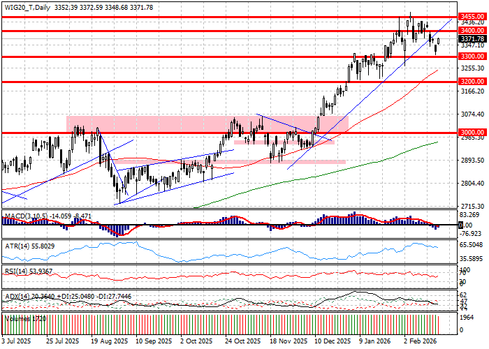 Pierwsza godzina sesji na Wall Street przynosi mocne zwyżki najważniejszych indeksów. Nasdaq Composite rośnie o 1,1 procent przy zwyżce DJIA o 0,6 procent oraz umocnieniu S&P500 o 0,7 procent. Poprawa atmosfery pozostaje jednak za mała, by zmieniła obraz indeksów pozostających w konsolidacjach. Warto odnotować wzrost cen surowców, a zwłaszcza zwyżkę cen ropy o 3 procent, która zdaje się znów posilać napięciami pomiędzy Iranem i USA oraz powrotem spekulacji o potencjalnej wojnie na Bliskim Wschodzie. Niemniej, GPW zdaje się szukać zwyżki i WIG20 wszedł w ostatnią godzinę sesji na dziennych maksimach. Rynek przenosi do Warszawy analogiczne zachowanie niemieckiego DAX-a, więc odbicie jest zakorzenione w korelacji z otoczeniem. Wzrost indeksu o 1,3 procent wygląda ciekawie, ale naprawdę tylko znosi wczorajszą przecenę. Na poziomie technicznym stale najważniejsza pozostaje próba zbudowania odbicia na wsparciu w rejonie 3300 pkt., gdy układ na wykresie nie pozwala powiedzieć, iż korekta została zakończona, a rynek wrócił do gry o pokonanie strefy 3500-3475 pkt.