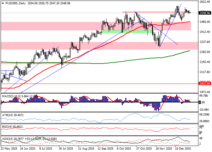 Kontrakt na indeks Russell 2000 skończył sesję piątkową spadkiem o 0,6 procent, ale popyt i tak ugrał tygodniową zwyżkę o 0,2 procent. Notowania nowego tygodnia zaczynają się kosmetyczną zmianą, która konsoliduje wykres w rejonie 2550 pkt. Obraz techniczny pozostaje bez zmian. Rynek konsoliduje się między szczytem hossy i ostatnim dołkiem, szukając kształtu konsolidacji i ponownie gasząc zmienność. Dla techników ważne pozostaje, iż rynek zagrał korektę ostatniej fali wzrostowej, która skierowała uwagę na wsparcia w rejonie 2450 pkt., gdzie połamane opory i średnia z 50 sesji stały się punktem gry o wygaszenie korekty. W praktyce, technicy będą czekać na kolejną konfrontację wykresu z jakąś barierą techniczną, która pozwoli ocenić układ sił po ostatnim wzroście zmienności, ale bez zapominania, iż Wall Street jest teraz w fazie świątecznej, gdy płynność jest mniejsza, co ma szczególne znaczenie w przypadku spółek o małej kapitalizacji.