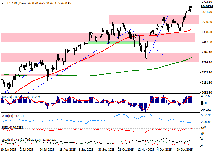 Kontrakt na indeks Russell 2000 wzrósł w środę o 0,7 procent. Zwyżki starczyło do wyznaczenia nowego ATH na poziomie zamknięcia dnia, ale ATH w perspektywie intra – wykreślone we wtorek – pozostało aktualne. Notowania czwartkowe przynoszą próbę kontynuacji wzrostów i zbliżenie do ATH w rejonie 2676 pkt. Wczorajszy wzrost i dzisiejsza zwyżka stają się przeciwwagą dla sesji wtorkowej, która skończyła się wyrysowaniem świecy o skromnym korpusie z dynamicznym górnym cieniem. Klasyczne odczytanie świecy sumowało się w ostrzeżenie przed korektą, a w połączeniu z wysokimi położeniami oscylatorów, dywergencjami i sygnałami wykupienia rynku wręcz zachętą do realizacji zysków. Z tej perspektywy patrząc rynek zdaje się gasić zatem zachęty do korekty, ale wskaźniki stale ostrzegają popyt dywergencjami przed ryzykiem skorygowania ostatniej fali wzrostowej. Szersza perspektywa daje przewagę stronie popytowej. Rynek wybił się z konsolidacji między strefą 2600 pkt. i wsparciami w rejonie 2450 pkt. Szerokość konsolidacji wskazuje, iż ruch zbudowany potencjałem wybicia może wynieść około 150 punktów, co oznaczałoby, że sukces byków w rejonie 2600 pkt. otworzył drogę w rejon 2750 pkt. Również momentum obrazowane relacją wykresu ceny i średnich z 50 i 200 sesji jednoznacznie wskazuje na przewagę strony popytowej i aktualność trendu wzrostowego. Niemniej, szybowanie na nowym ATH oznacza, iż rolę oporów technicznych pełnią również bariery psychologiczne, na które kontrakt wykazywał już dużą wrażliwość, więc ostatnia kontra podaży w rejonie 2677 pkt. może okazać się elementem liczenia się rynku w rejonie 2700 pkt.