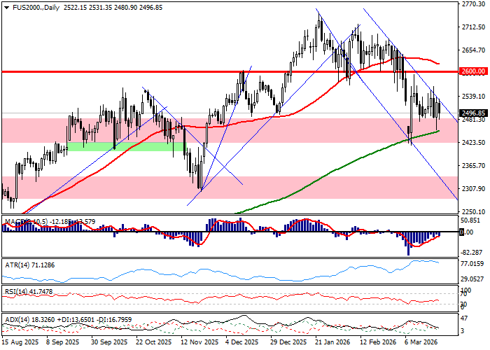 Kontrakt na indeks Russell 2000 wzrósł w czwartek o niespełna 0,7 procent, gdy notowania piątkowe przynoszą spadek o blisko 0,5 procent. Efekty widać na wykresie CFD, który pokazuje, iż zmienność przegrywa z lokalną konsolidacją. W istocie, w perspektywie tygodniowej rynek raczej konsoliduje się niż szuka mocnego przesunięcia. Technicznie patrząc zachowanie rynku nie niesie nowych treści. W lokalnym układzie stale dominuje kanał spadkowy, który ustawia rynek w kolizji z bronioną – również wczoraj - średnią z 200 sesji grającą rolę wsparcia. Układ na wykresie narzuca czekanie na wynik zwarcia między MA200 i górnym ograniczeniem kanału spadkowego, które na jednej stronie wymusi poddanie swojej linii obrony. Przełamanie MA200 będzie zaproszeniem już nie tylko do testowania marcowego dołka wyrysowanego nad 2400 pkt., ale też do zejścia w rejon 2300 pkt. Mimo wczorajszego odbicia się wykresu od linii kanału, wskaźnikowo popyt nie jest bez szans w grze o przełamanie kanału, ale załamanie fali spadkowej stanie się ledwie zaproszeniem do testowania oporów w rejonie 2600 pkt. wzmacnianych średnią z 50 sesji.