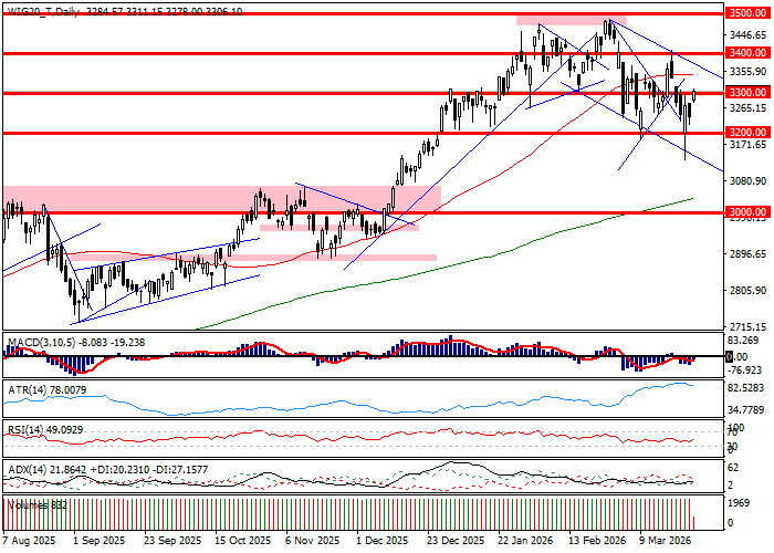Środkowa faza sesji lokuje WIG20 w rejonie 3310 pkt. Indeks zyskuje przeszło 2 procent przenosząc do Warszawy wzrosty w otoczeniu, które operuje w kontekście spadków cen ropy. Lokalną zmienną – również zakotwiczoną w zachowaniu innych rynków – jest wzrost KGHM o 4,4 procent. Spółka odpowiada na zwyżki cen metali. Technicznie patrząc ruch WIG20 w rejon 3310 pkt. oznacza wyjście na maksima bieżącego tygodnia, ale też tylko powrót na poziomy, które w poprzednim tygodniu pełniły rolę miejsca równoważenia się podaży i popytu.