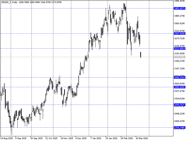 Pierwsze 60minut handlu na warszawskim parkiecie przyniosło spodziewane spadki. Zaskoczeniem mogła być jednak ich skala, gdzie WIG20 przetestował minima na 3164 pkt. Na części spółek widoczne były realizacje większych/lawinowych zleceń typu SL (XTB czy DAT), co przyniosło mocne spadki w ujęciu %. Rynek pozostaje pod presją podaży czekają na dalsze ruchy na ropie i doniesienia z Iranu. Teoretycznie ultimatum Trumpa (otwarcie Ormuzu) obowiązuje jednak w ciągu ostatnich 24h Izrael i Iran ostrzeliwały się co stawia pod znakiem zapytania czy jednak oferta wciąż obowiązuje. Z rynkowego punktu widzenia WIG20 wybił się z konsolidacji, co sugeruje dalszą podaż w kierunku okolic 3050 pkt. W praktyce „gramy” zamknięcia czyli popyt ma ciągle szansę zanegowania tego sygnału.