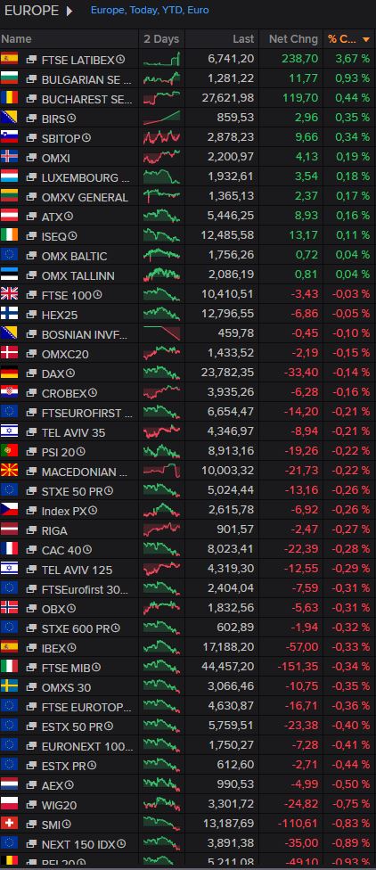 Większość parkietów w Europie dziś nieznacznie traci: