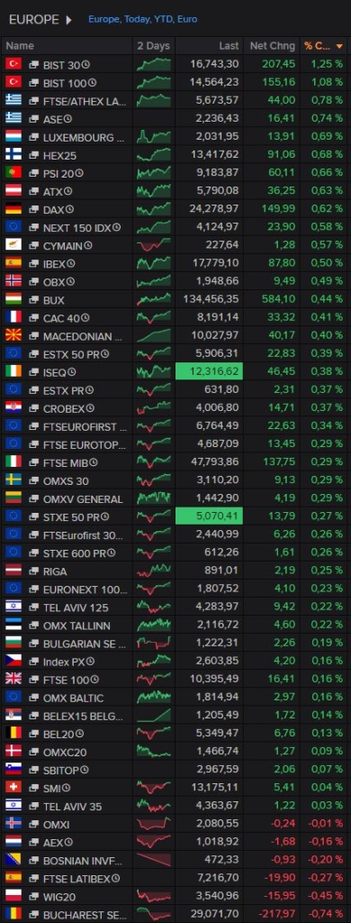 Co ciekawe WIG20 jest dziś jednym z najsłabszych indeksów w Europie (przy czym zmiany generalnie pozostają ograniczone).