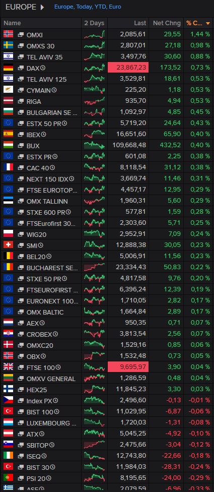 Spokojna sesja w Europie