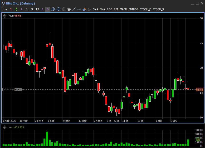 Nike odnotował drugi z rzędu kwartalny spadek marż brutto, a słaba sprzedaż w Chinach oraz zmiany w ofercie produktowej obciążyły wyniki. Choć przychody za kwartał przekroczyły prognozy, spółka spodziewa się spadku sprzedaży w niskim jednocyfrowym tempie w kluczowym okresie świątecznym.
