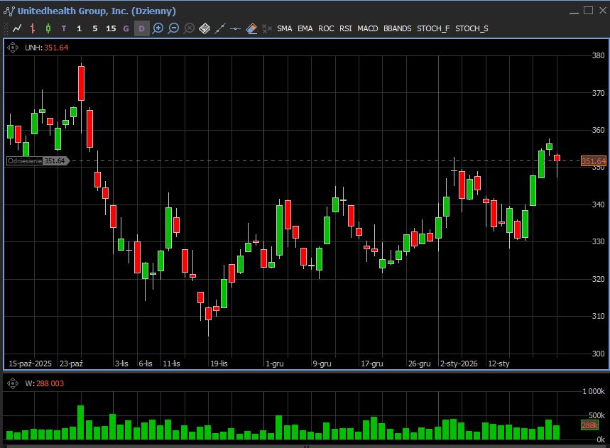 UnitedHealth prognozuje skorygowany zysk w 2026 r. nieznacznie powyżej oczekiwań analityków, jednak akcje spółki spadły niemal 12% po tym, jak rynek negatywnie ocenił niższe od spodziewanych podwyżki stawek Medicare Advantage na 2027 r.