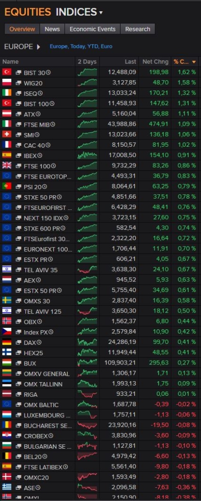 Minęła godz. 12:00, a bilans sesji w Europie wskazuje iż WIG20 razem z parkietami Tureckimi są najmocniejszymi indeksami w zestawieniu. Ruch ten wyraźnie różnicuje GPW wobec benchmarków zachodnich (np. DAX) ale również w relacji do MSCI EM. Siła WIG20 ponownie koreluje ze aprecjacją PLN na rynku FX, sugerując aktywność inwestorów zagranicznych. W zakresie fundamentalnym trudno wskazać na oczywisty powód takich przepływów – w Europie trwają negocjacje UA-UE-USA-RUS, ale wydaje się iż optymizm związany z ewentualnym zawieszeniem broni jest ograniczony.