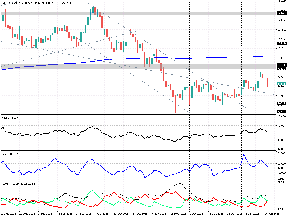 W tle politycznym rośnie ryzyko odwetu Brukseli – według „FT” stolice unijne rozważają pakiet ceł i ograniczeń dostępu dla amerykańskich firm wart ok. 101 mld USD, co rynek odczytuje jako otwarcie nowego frontu wojny handlowej. Dla Bitcoina oznacza to podwójny cios: po pierwsze, odpływ kapitału z aktywów o wysokim współczynniku Beta. Po drugie przejściowe zacieśnienie warunków finansowania dla spekulacyjnego lewaru. Indeks strachu i chciwości dla kryptowalut spadł z 61 do 44 punktów, co pokazuje, jak szybko z euforii przeszliśmy w fazę defensywnego wyczekiwania. Jednocześnie warto pamiętać, że tak silne fale likwidacji historycznie często kończyły się stworzeniem lokalnego minimum, jeżeli w kolejnych dniach rynek nie otrzyma kolejnej porcji negatywnych informacji. Kierunek kolejnych ruchów BTC będzie jednak zależeć od retoryki wokół ceł na lini USA–UE oraz od tego, czy korekta na rynku akcji przerodzi się w głębszą falę risk‑off. Z punktu widzenia krótkoterminowych graczy na lewarze kluczowe jest obecnie zejście z wysokich poziomów zadłużenia i odbudowa płynności order booków, aby uniknąć kolejnej lawiny ucieczki wobec 93k $. Z technicznego punktu widzenia futures na Bitcoin cofa się z powrotem w okolice 93 tys. USD – to lokalny poziom równowagi, zbieżny z wcześniejszym minimach konsolidacji oraz jedną z kluczowych linii horyzontalnych. Poniżej znajduje się kolejna bariera obronna byków w strefie 89–85 tys. USD, a dopiero zejście pod 84,8–81,1 tys. USD otwierałoby drogę do powrotu do jesiennych minimów i zanegowania scenariusza odwrócenia trendu. W górę najbliższy poważny opór to ponownie 101–104 tys. USD, a potem konfluencja 200‑sesyjnej średniej kroczącej oraz wcześniejszych dołków w rejonie 108–111 tys. USD. Dopiero wybicie tych poziomów dawałoby techniczne potwierdzenie, że większa korekta spadkowa ma za sobą punkt kulminacyjny.