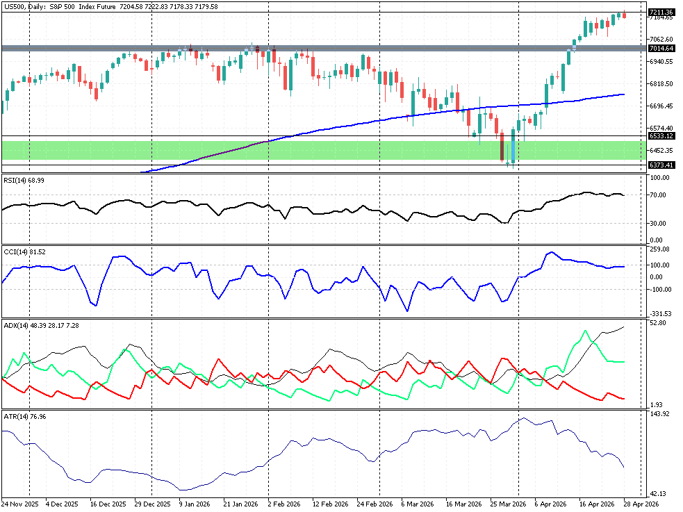 Technicznie patrząc US500 po wybiciu ponad 7014 - 7015 pkt utrzymują trend wzrostowy i handlowane są w zakresie 7222–7173 pkt, jednak RSI na poziomie ~68 i spłaszczająca się dynamika świec sugerują przejście z fazy impulsu do konsolidacji. W ujęciu Wyckoffa rynek może znajdować się w fazie dystrybucji, gdzie podaż zaczyna równoważyć popyt, a brak kontynuacji wzrostów zwiększa ryzyko korekty. Kluczowe wsparcie pozostaje w strefie 7015–6940 pkt – jego obrona podtrzymuje trend, natomiast wybicie w dół otworzy przestrzeń nawet w kierunku 6700 pkt.