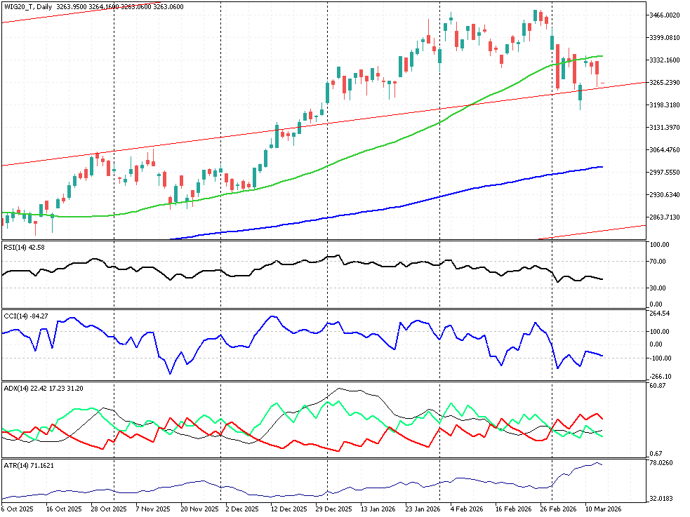 Technicznie WIG20 testuje obecnie wczorajsze minima, a zejście poniżej poziomu TL 3250 pkt. otworzyłoby drogę do testu psychologicznego wsparcia na 3200 pkt. Na wykresie dziennym widać, że indeks walczy o utrzymanie się wewnątrz długoterminowego kanału wzrostowego, jednak narastająca presja podażowa i negatywne wskazania oscylatorów (RSI w trendzie spadkowym, rosnący DMI-) sugerują przewagę niedźwiedzi w krótkim terminie. Inwestorzy pozostają w trybie wyczekiwania na popołudniowe dane o inflacji PCE z USA, które będą kluczowym katalizatorem dla dalszego przebiegu sesji. Przy obrotach na otwarciu rzędu 46 mln zł na WIG20, rynek wykazuje dużą nerwowość, a brak wyraźnego popytowego kontrataku w pierwszej godzinie handlu może zwiastować próbę domykania tygodnia na lokalnych minimach.