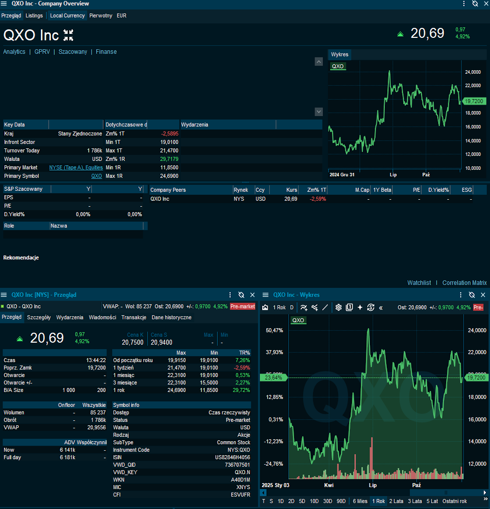 QXO Inc ($ QXO): Kurs akcji QXO zyskuje w fazie przedsesyjnej 5,07% po informacji, że Apollo Global Management i kilku innych inwestorów zgodziło się zainwestować 1,2 miliarda dolarów w dystrybutora materiałów budowlanych, aby wesprzeć jego starania o przejęcie. Firma QXO kierowana przez Brada Jacobsa próbowała w zeszłym roku kupić konkurencyjnego GMS za 5 miliardów dolarów w ramach wrogiej oferty, która ostatecznie została sprzedana Home Depot. / Reuters