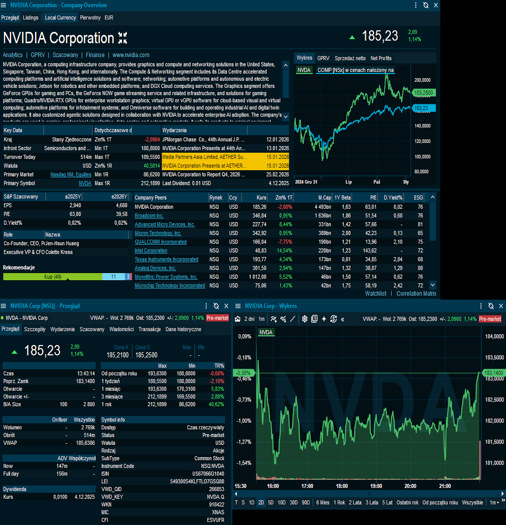 Nvidia ($ NVDA): Trump nałożył 25% cło na wybrane układy AI, w tym H200, co bezpośrednio dotyka narracji o marżach i popycie poza USA. Biały Dom podkreśla, że cła mają być „wąsko ukierunkowane” i nie obejmować importu dla amerykańskich centrów danych, ale rynek będzie wyceniał ryzyko łańcucha dostaw i retorsji. Dodatkowo pojawiają się sprzeczne sygnały z Chin co do dopuszczenia H200, co może zwiększyć niepewność co do sprzedaży zagranicznej. Krótko: w chipach temat dnia to nie tylko popyt, ale polityka handlowa. / Reuters