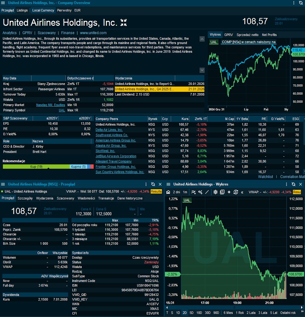 United Airlines ($ UAL): United podał mocne prognozy na kwartał i cały rok, wskazując na trwale silny popyt premium i biznesowy, co wspiera marże mimo presji w segmencie „price sensitive”. Spółka przebiła oczekiwania EPS w kwartale grudniowym, a guidance na Q1 ma punkt środkowy powyżej konsensusu. Kluczowy wątek sektorowy: linie coraz bardziej „monetyzują” premium, lojalność i upsell, co może różnicować zwycięzców i przegranych w branży. Ryzyko: jeśli geopolityka/taryfy podbiją ryzyko recesji, travel bywa pierwszym miejscem cięć — na razie dane tego nie pokazują. / Reuters