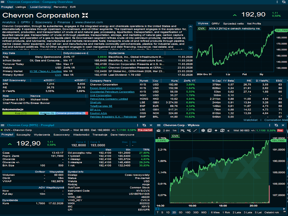 Chevron ($ CVX): Energean przejmuje udziały Chevron w dwóch morskich blokach w Angoli za bazowe 260 mln USD, co wpisuje się w strategię budowy centrum w Afryce Zachodniej. Chevron pozostaje zaangażowany w inne angolskie aktywa (bloki 0, 33, 49, 50, Angola LNG), więc transakcja to selektywna optymalizacja portfela, nie wyjście z rynku. W kontekście skoku ropy do 100 USD, aktywa wydobywcze Chevron zyskują na wartości, co wspiera kurs. / Reuters