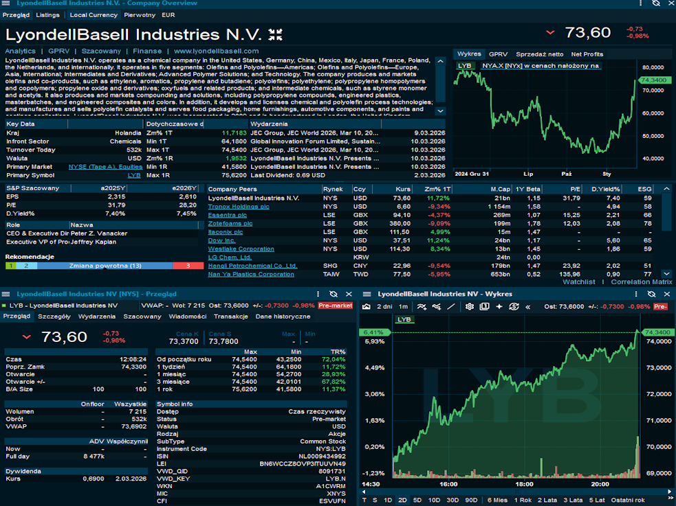 LyondellBasell Industries ($ LYB): Akcje korygują się o ok. 1% w handlu przedsesyjnym po informacji o pożarze w zakładzie Bayport Choate w Teksasie, choć spółka zapewnia o opanowaniu sytuacji i bezpieczeństwie pracowników. Incydent ten wprowadza lokalne ryzyko operacyjne tuż po wczorajszym, imponującym rajdzie kursu o ponad 10%. Wzrosty te były napędzane ociepleniem spojrzenia przez Citi w związku z oczekiwanym skokiem marż amerykańskich producentów chemicznych przy drogiej ropie. Analitycy wskazują, że konflikt z Iranem może zakłócić globalną podaż etylenu nawet o 15%, co stawia LYB w roli głównego beneficjenta rynkowych niedoborów. Dzisiejsza reakcja na pożar pokazuje jednak dużą wrażliwość inwestorów na wszelkie przestoje produkcyjne w tak napiętym otoczeniu makroekonomicznym. / Reuters