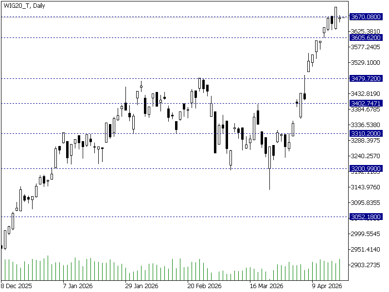 Technicznie, WIG20 pozostaje w fazie krótkoterminowej stabilizacji po ostatnich wzrostach, a utrzymanie bieżących poziomów sprzyja scenariuszowi ponownego podejścia pod lokalne maksima. Kluczowe pozostają poziomy 3670 pkt. (opór) oraz 3600 pkt. (wsparcie), których wybicie może nadać kierunek kolejnemu ruchowi.